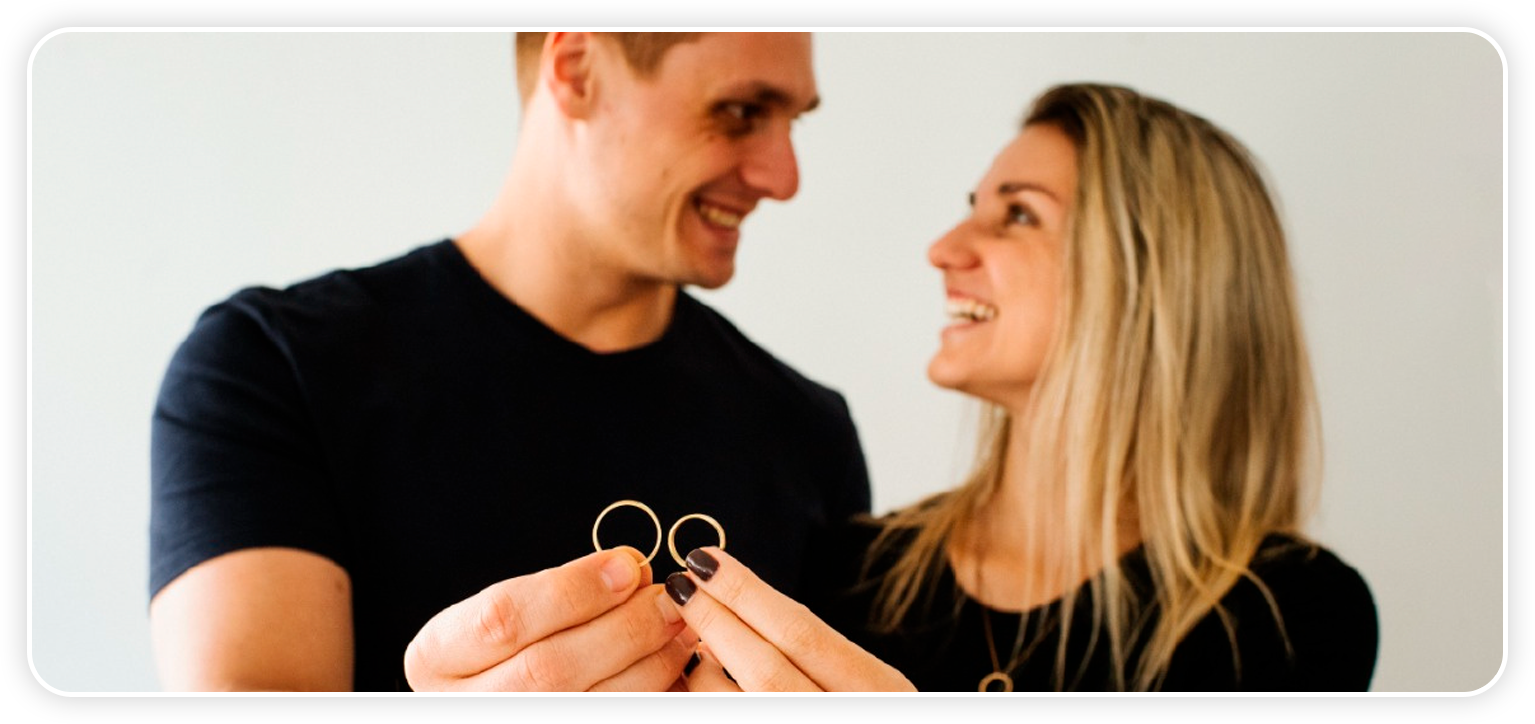Vocês escolhem o modelo das alianças - podemos criar juntos ou vocês nos enviam referências.